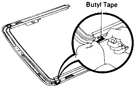 (c) Use butyl tape to cover the cut portion of the weatherstrip at the connection between the guide casing and guide rail.