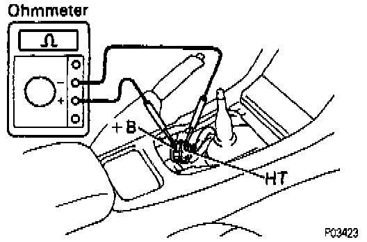 - Using an ohmmeter, measure the resistance between the terminals +B and HT.
