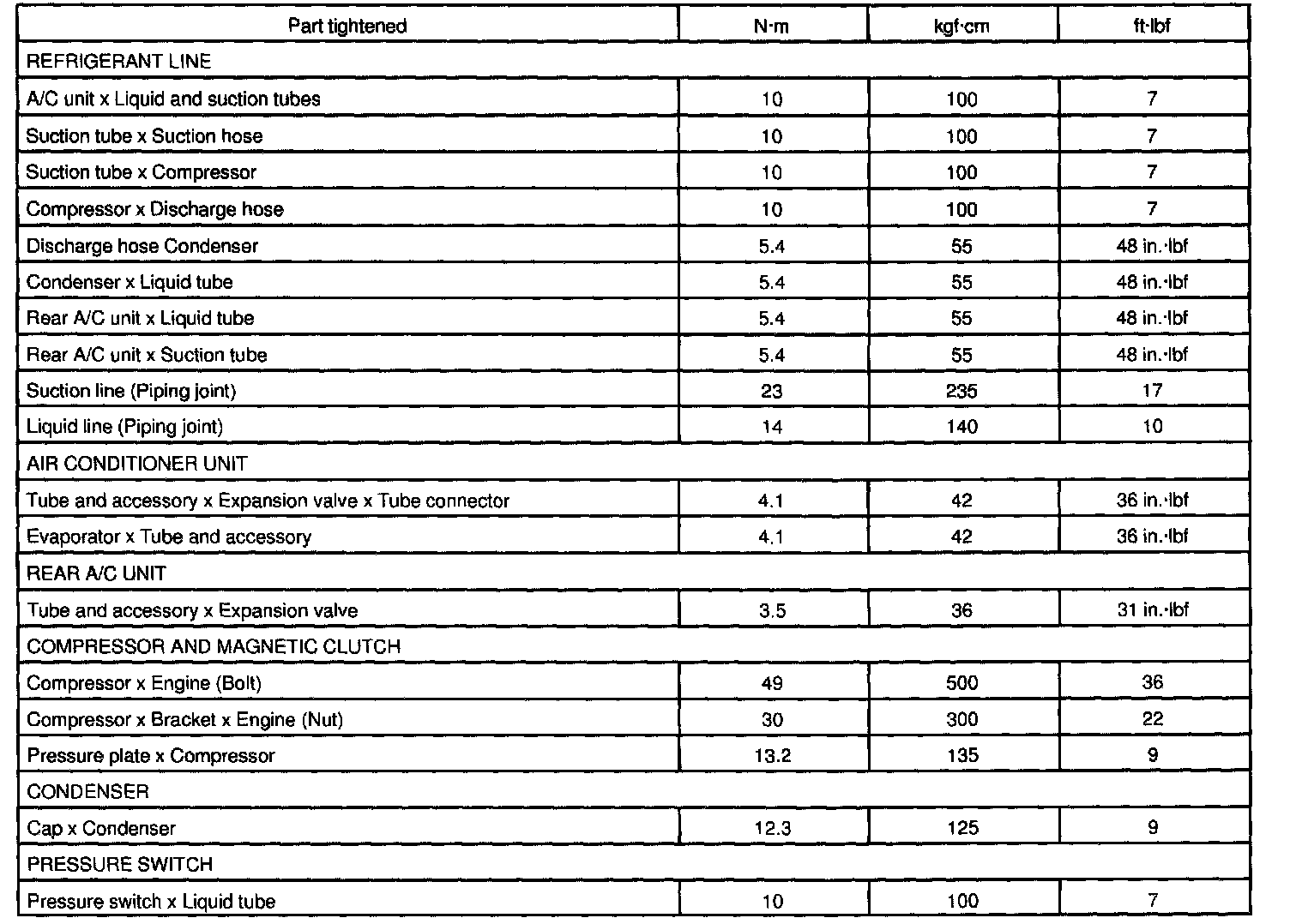 Air Conditioning - Torque Specification:
