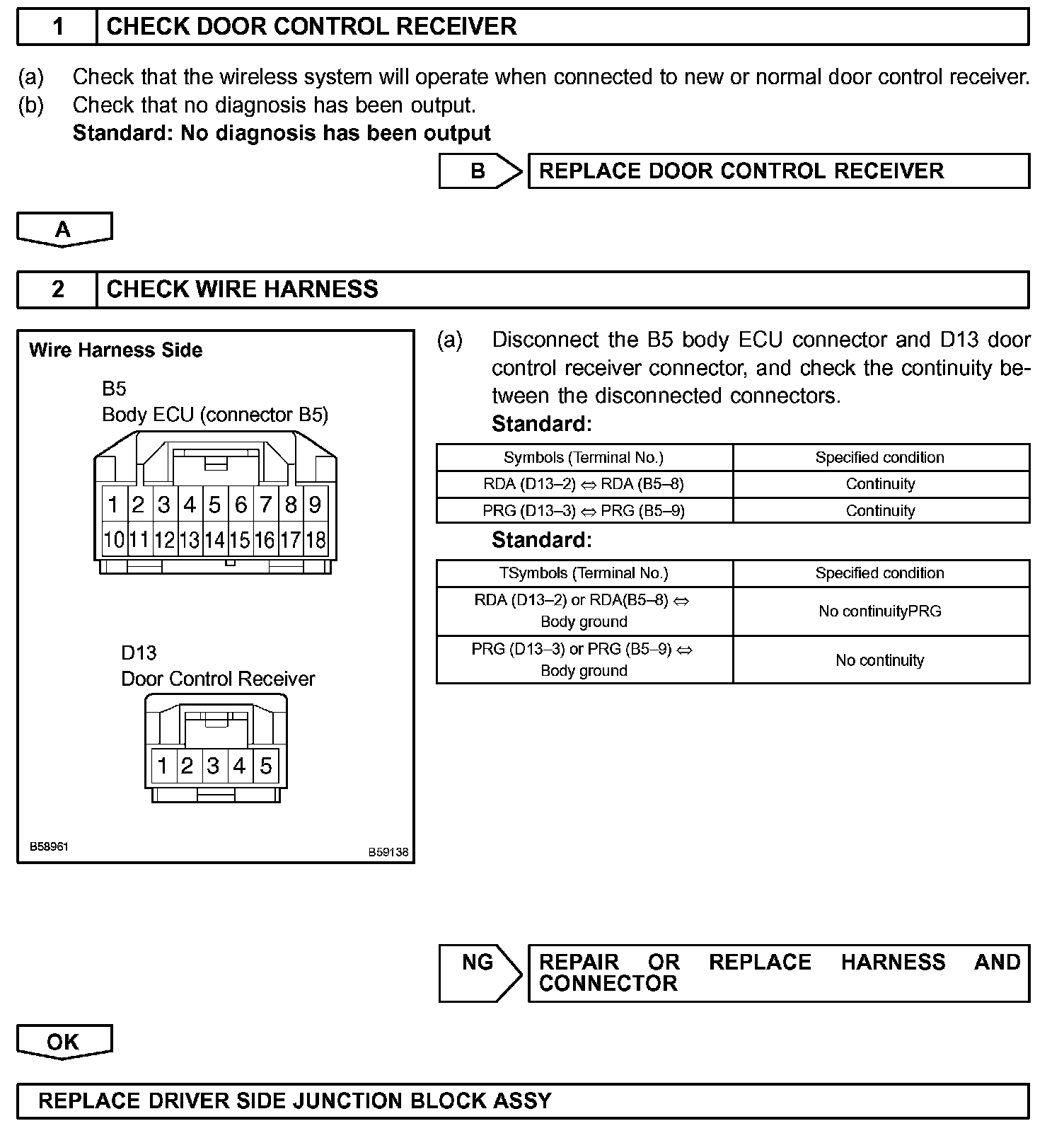 NOTE: Wireless door lock control system use a large-scale body multiplex communications. First of all, confirm the communication function depending on the "how to proceed with troubleshooting", and check that there is no abnormality in the communication system. Then finally proceed with the troubleshooting. Confirm the DTC B1242 before troubleshooting.
