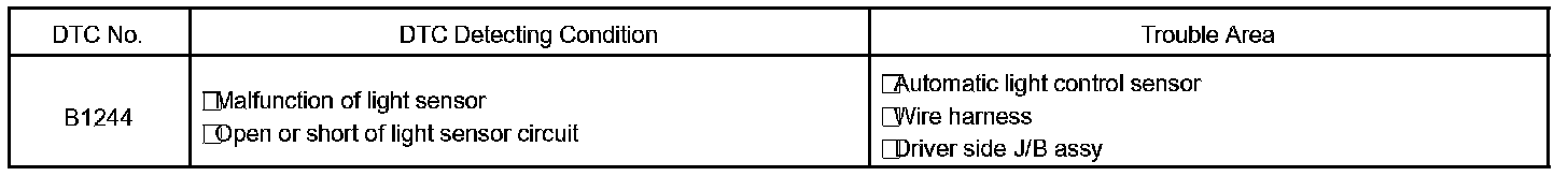 DTC B1244 LIGHT SENSOR CIRCUIT MALFUNCTION