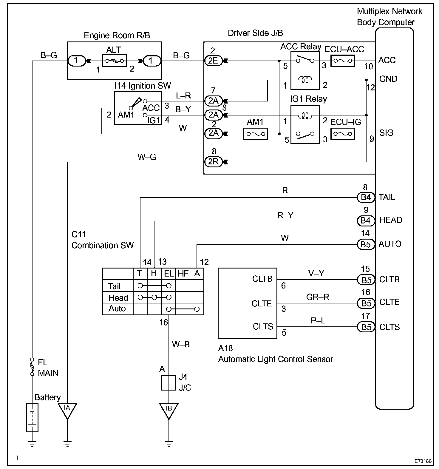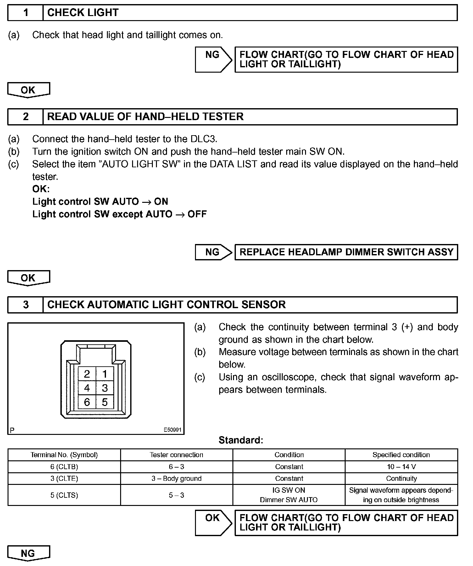 This DTC is output when failure in the light sensor circuit is detected.