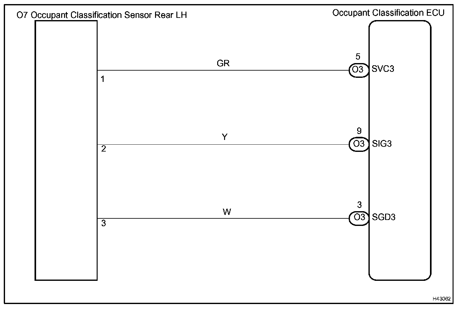 The occupant classification sensor rear LH circuit consists of the occupant classification ECU and the occupant classification sensor rear LH.