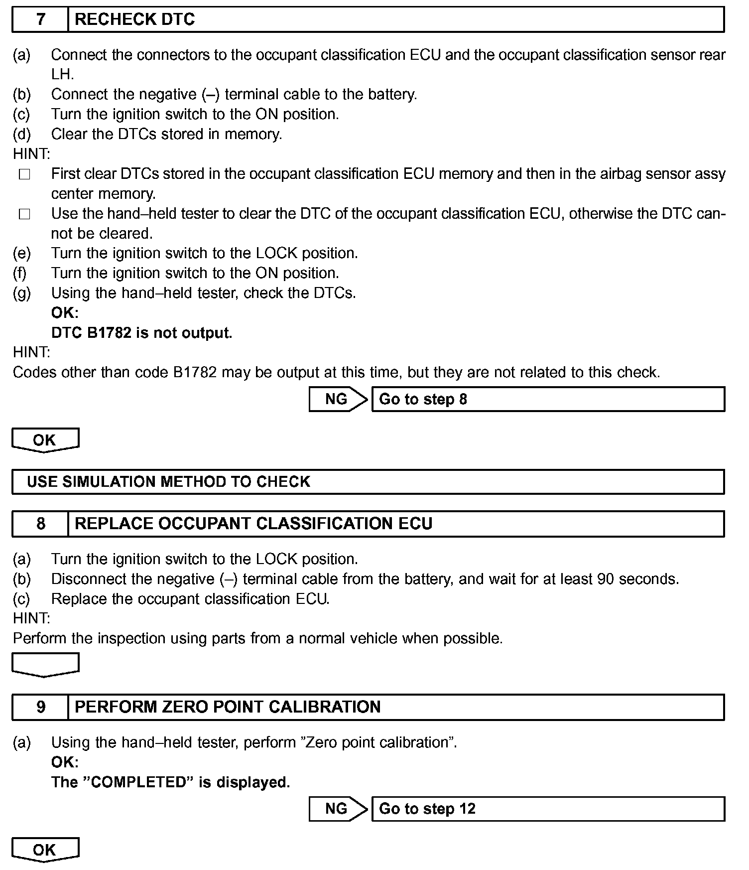 DTC B1782 OCCUPANT CLASSIFICATION SENSOR REAR LH CIRCUIT MALFUNCTION