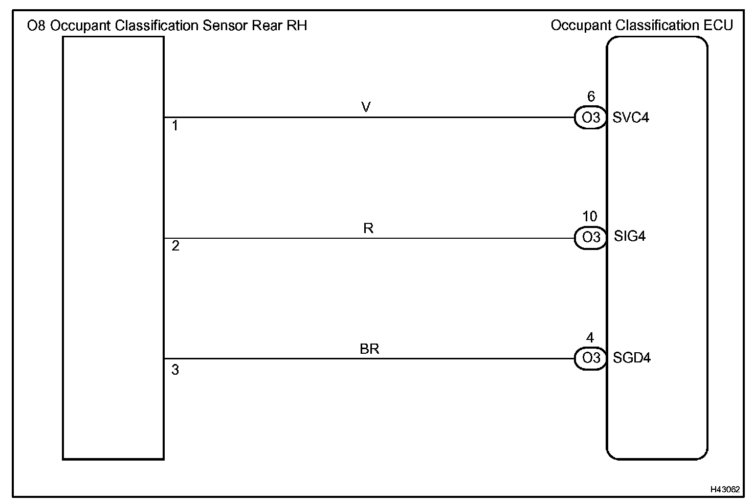 The occupant classification sensor rear RH circuit consists of the occupant classification ECU and the occupant classification sensor rear RH.