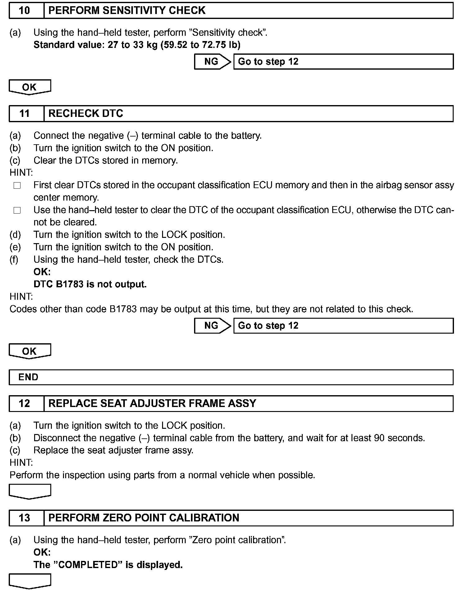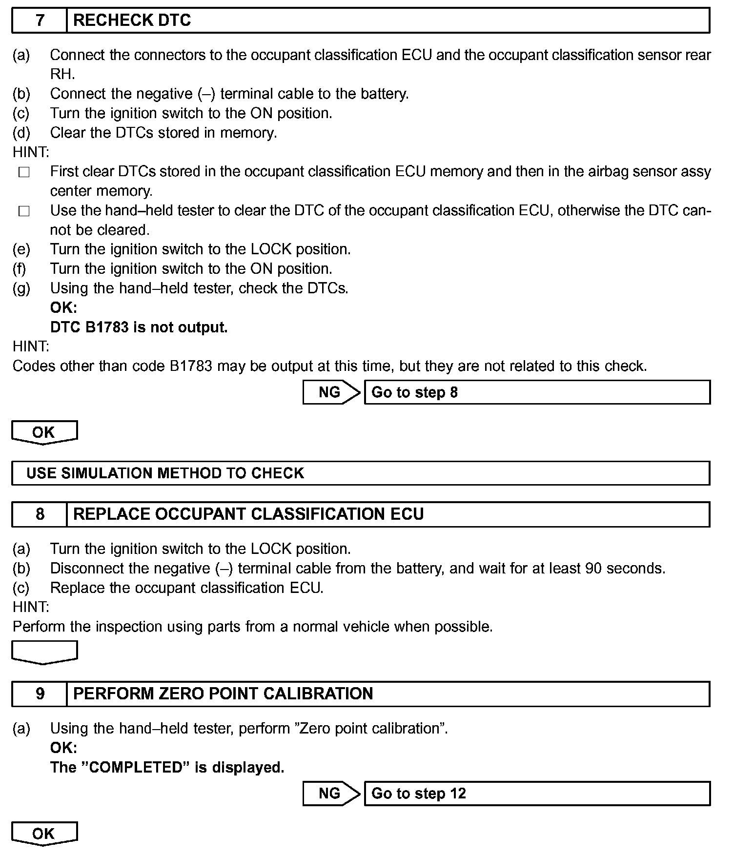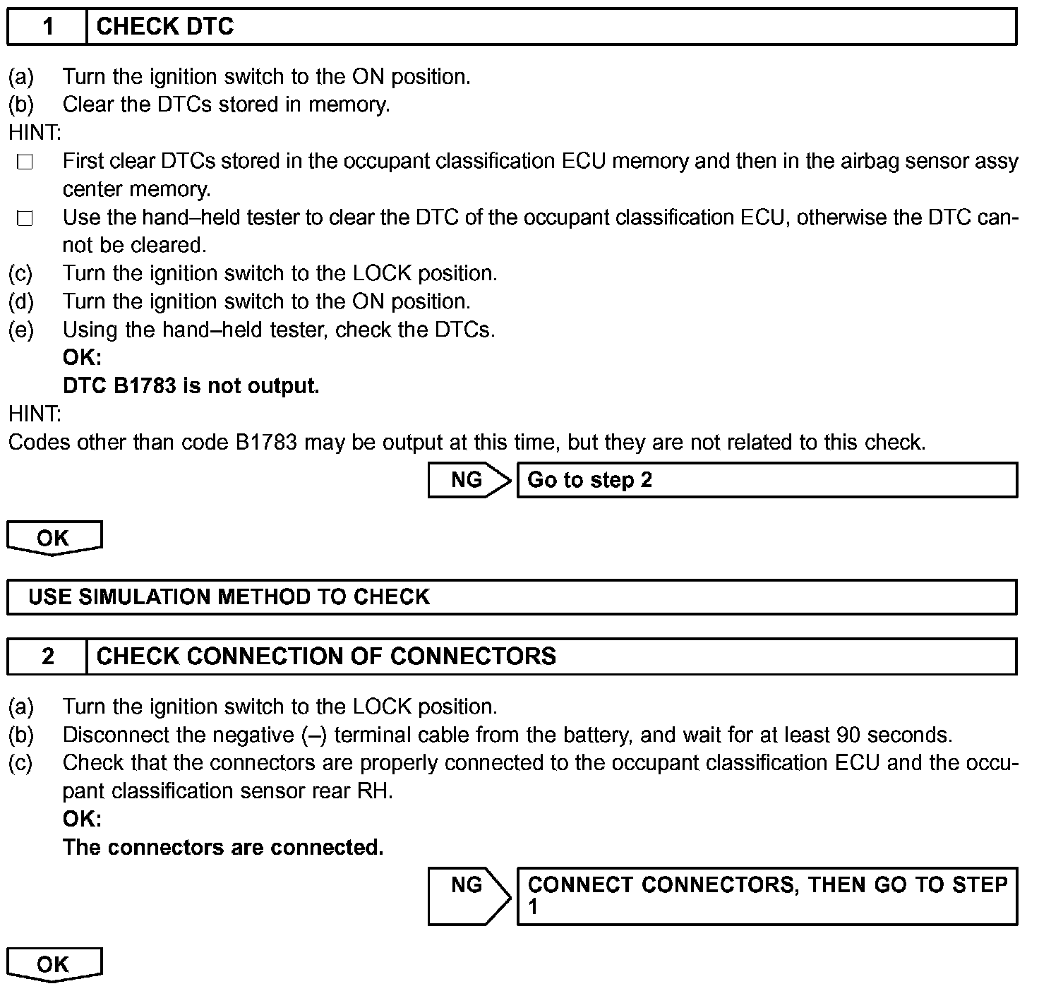 - When DTC B1650/32 is detected as a result of troubleshooting for the supplemental restraint system, perform troubleshooting for DTC B1783 of the occupant classification system.