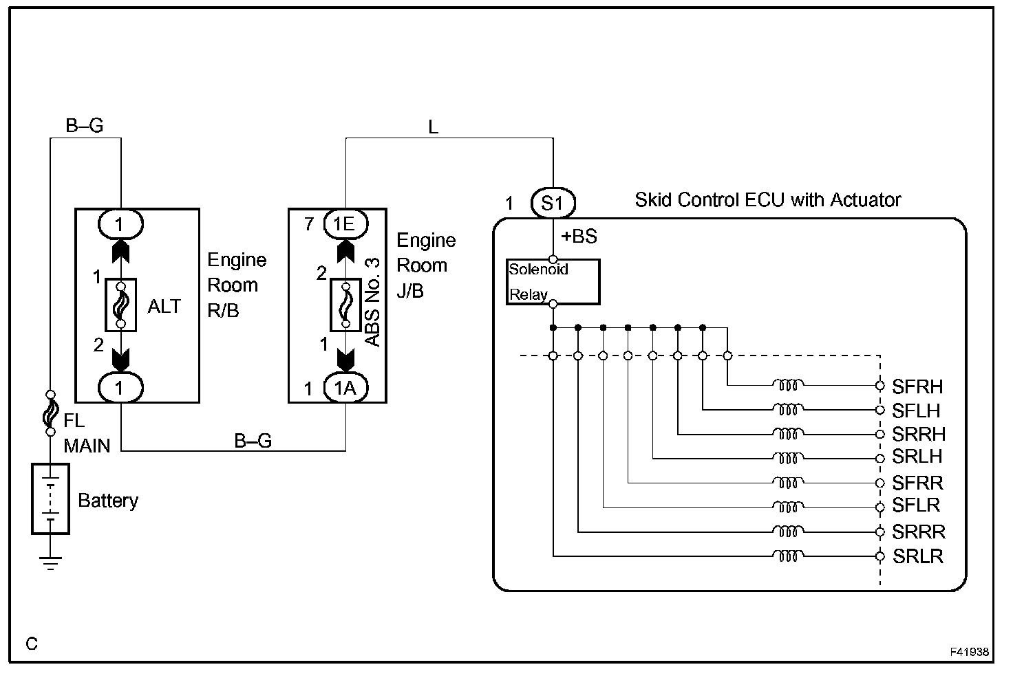 DTC C0278 OPEN CIRCUIT IN ABS SOLENOID RELAY CIRCUITCIRCUIT DESCRIPTION