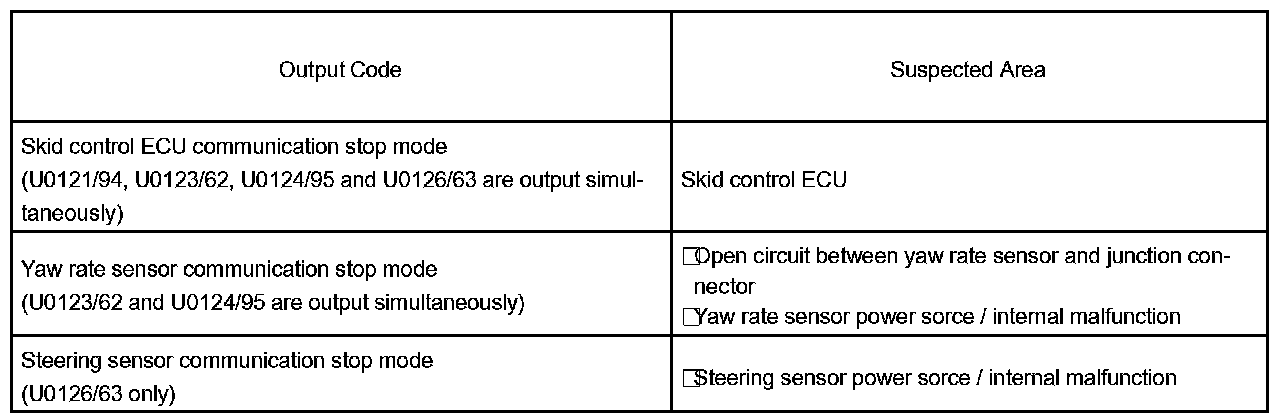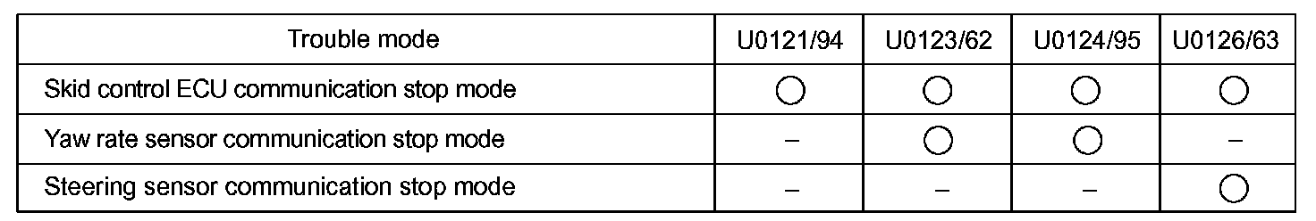 - U0121/94, U0123/62, U0124/95 and U0126/63 are the DTCs in the CAN communication system.