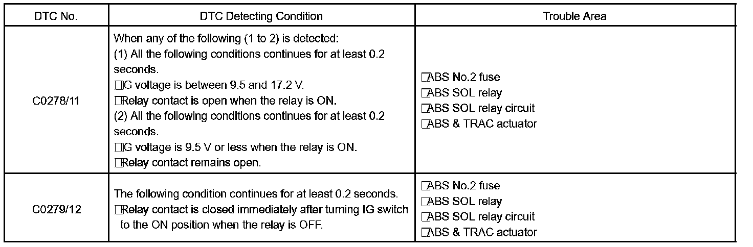 DTC 12 SHORT CIRCUIT IN ABS SOLENOID RELAY CIRCUITCIRCUIT DESCRIPTION