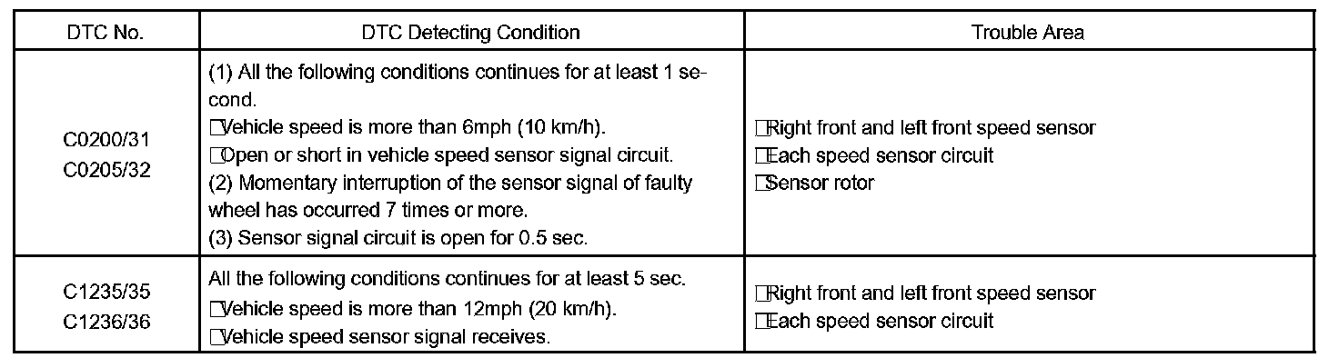 DTC C0205/32 and C1236/36 are for the left front speed sensor.