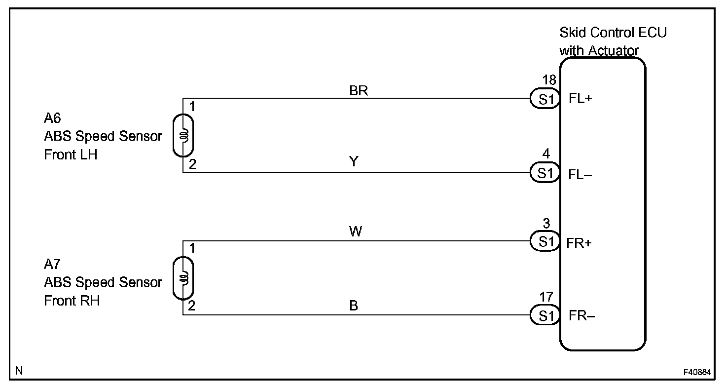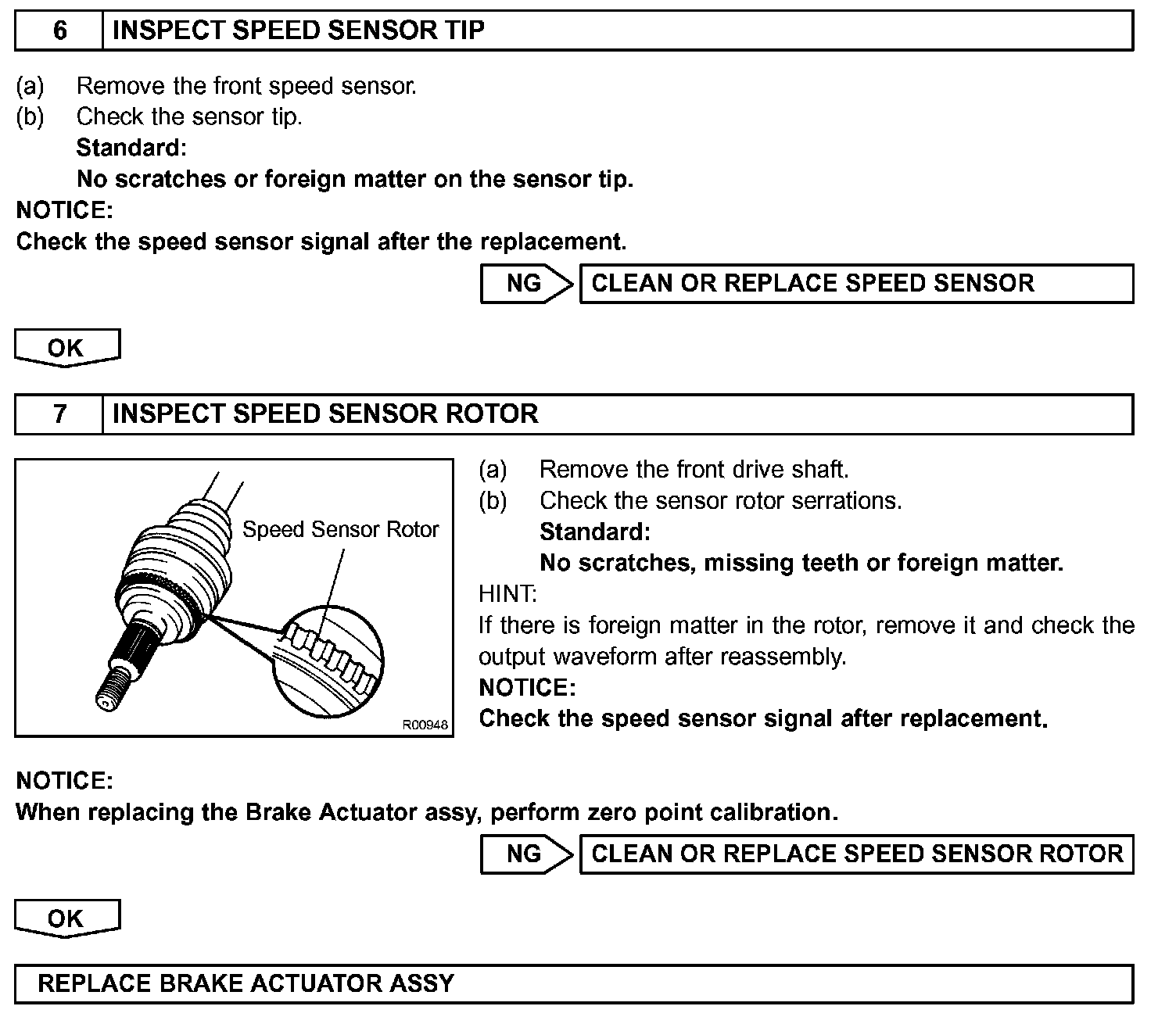 When the rotors rotate, the magnetic field emitted by the permanent magnet in the speed sensor generates AC voltage. Since the frequency of this AC voltage changes in direct proportion to the speed of the rotor, the frequency is used by the ECU to detect the speed of each wheel.