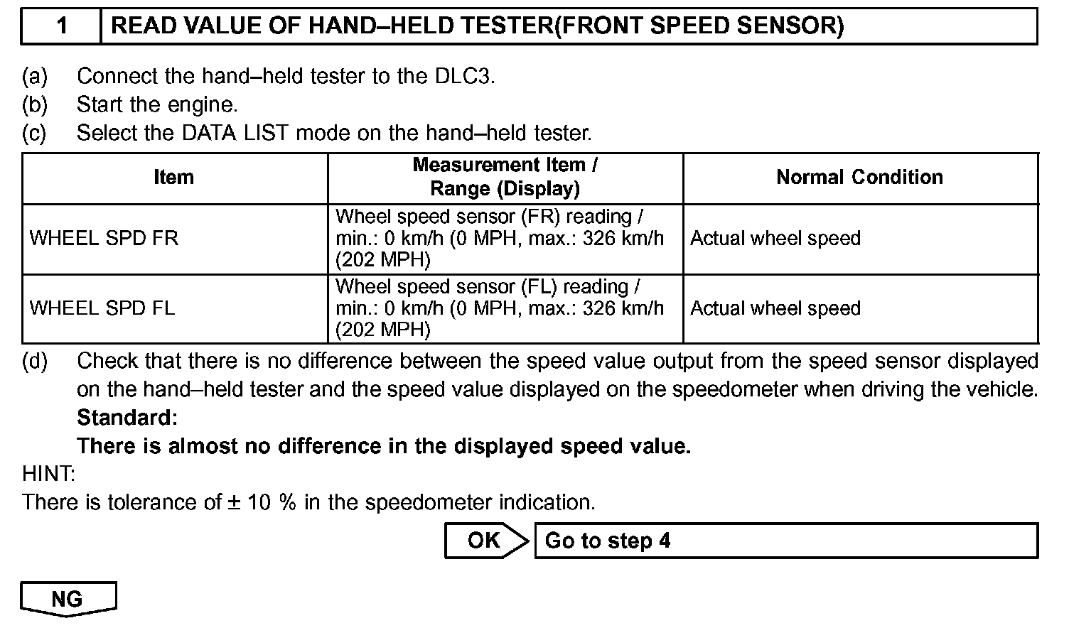 HINT: Start the inspection from step 1 when using the hand-held tester and start from step 2 when not using the hand-held tester.
