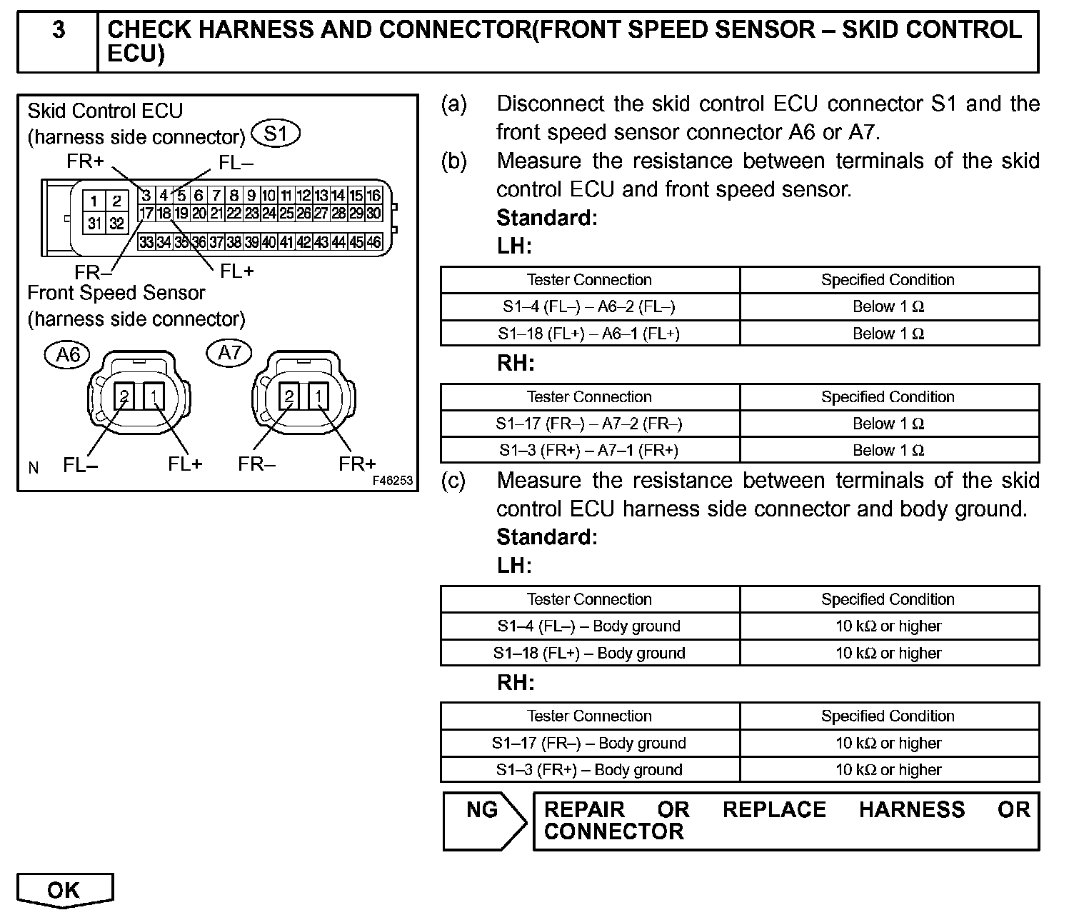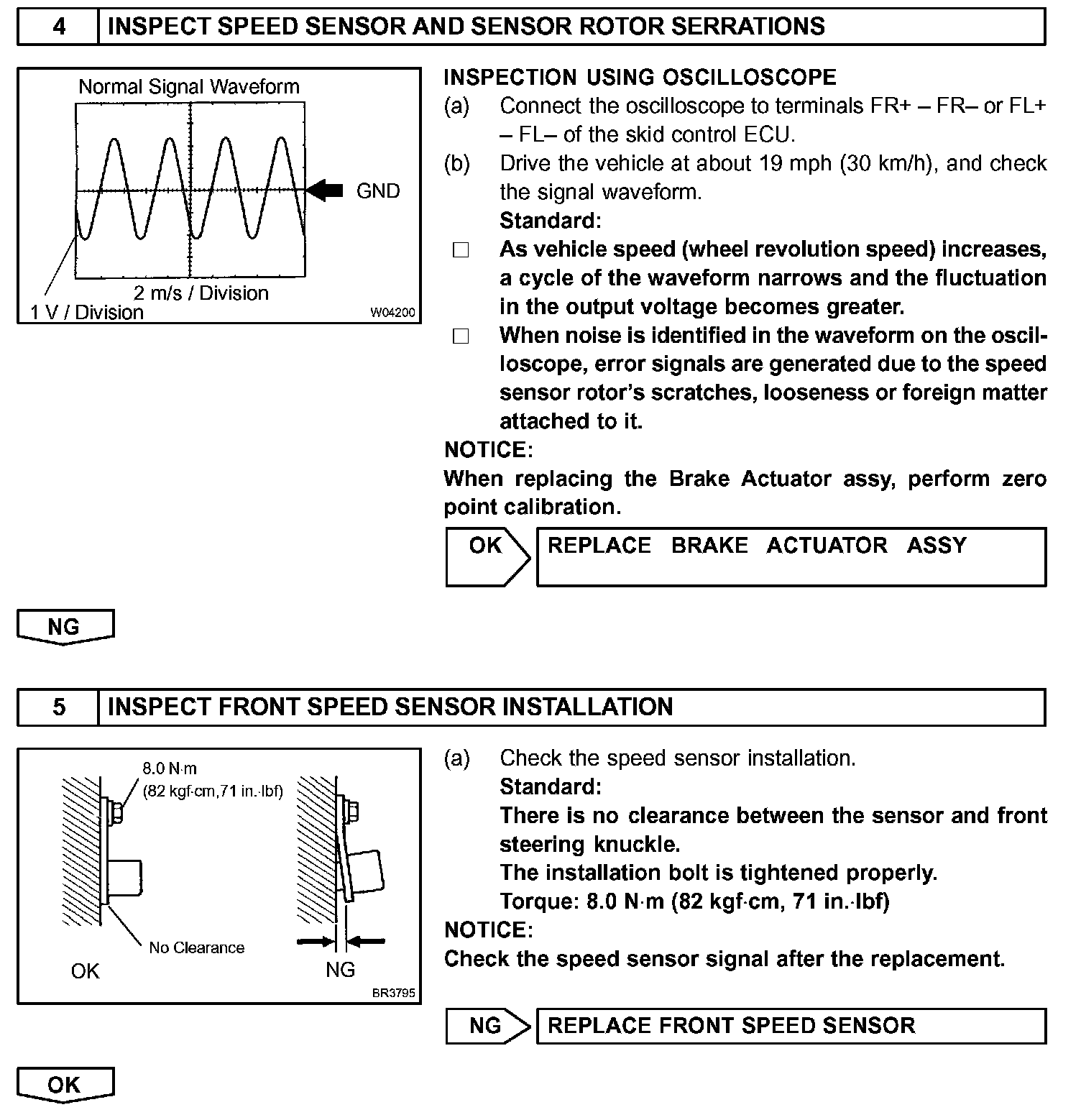 The speed sensor detects wheel speed and sends the appropriate signals to the ECU. These signals are used to control the ABS control system. The front and rear rotors have 48 serrations each.