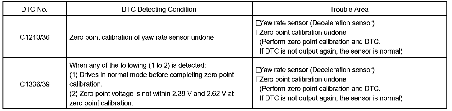 DTC 36 ZERO POINT CALIBRATION OF YAW RATE SENSOR UNDONECIRCUIT DESCRIPTION