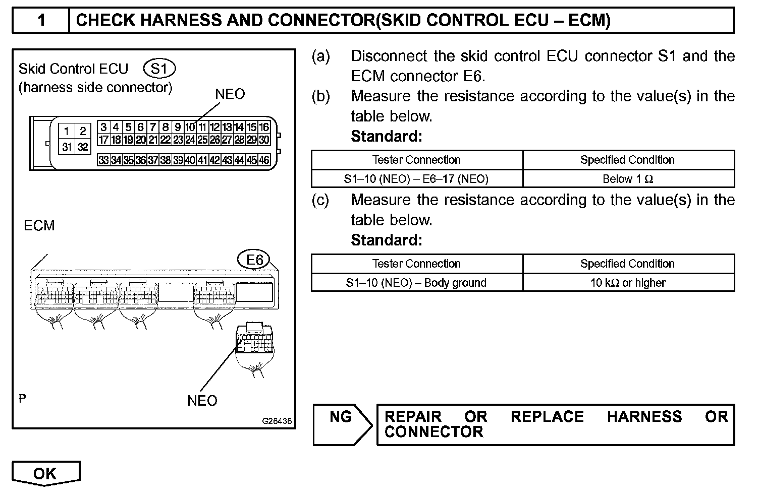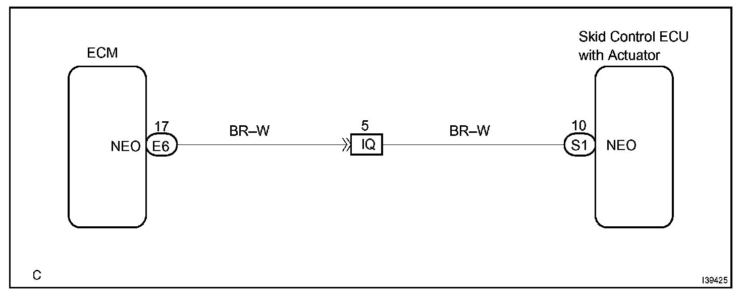The skid control ECU receives engine revolution speed signals (NE signals) from the ECM.