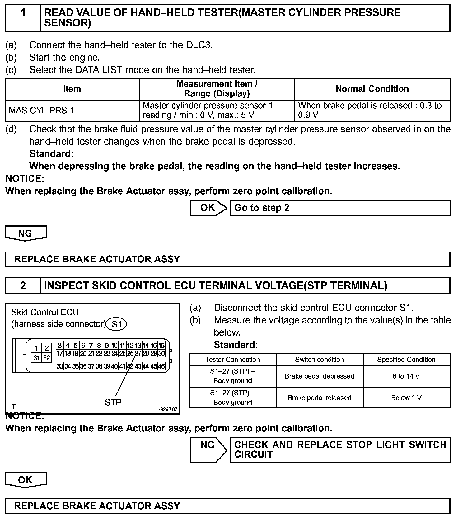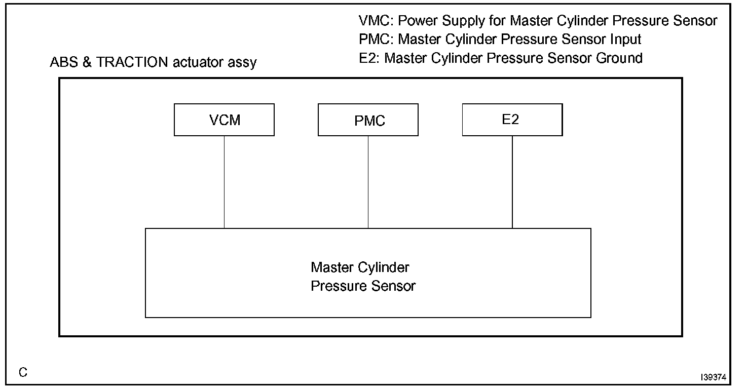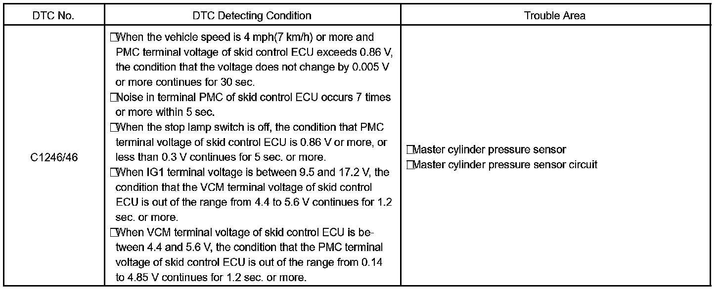 DTC 46 MALFUNCTION IN MASTER CYLINDER PRESSURE SENSORCIRCUIT DESCRIPTION
