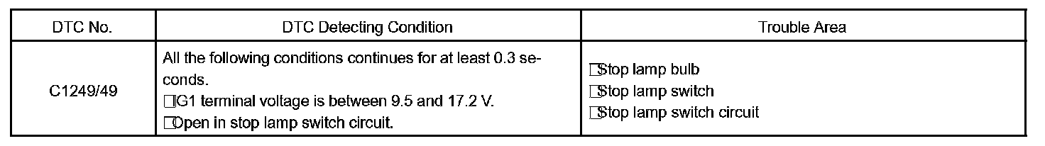 DTC 49 OPEN CIRCUIT IN STOP LIGHT SWITCH CIRCUIT