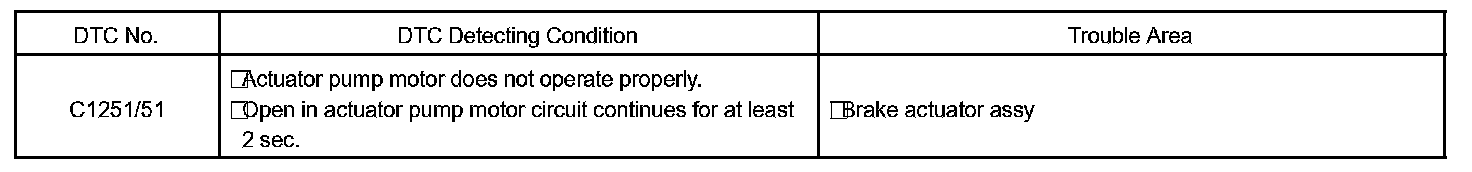 DTC 51 PUMP MOTOR IS LOCKED/OPEN CIRCUIT IN PUMP MOTOR GROUNDDTC Detecting Condition: