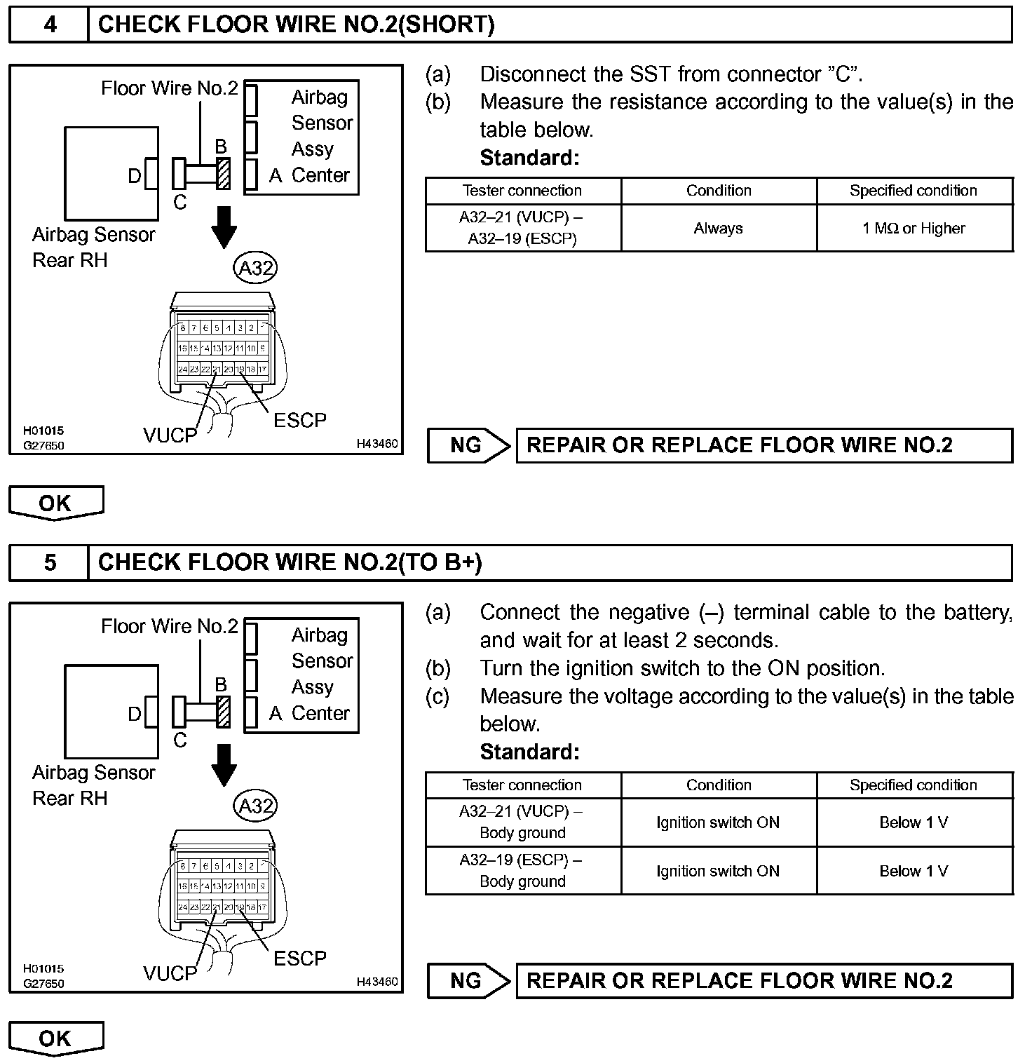 If the airbag sensor assy center receives signals from the lateral deceleration sensor, it judges whether or not the SRS should be activated.