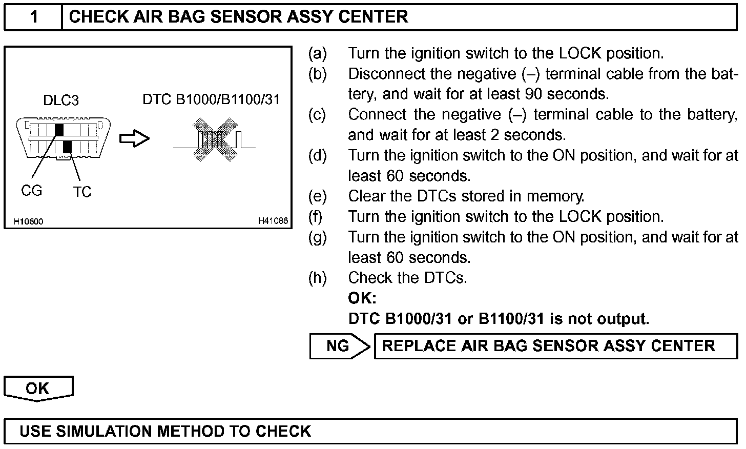 HINT: When a malfunction code is displayed simultaneously with B1000/B1100/31, repair the malfunction indicated by this code (except B1000/B1100/31) first.