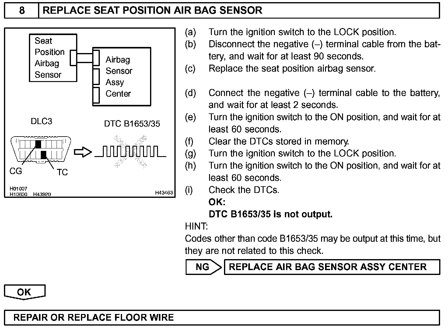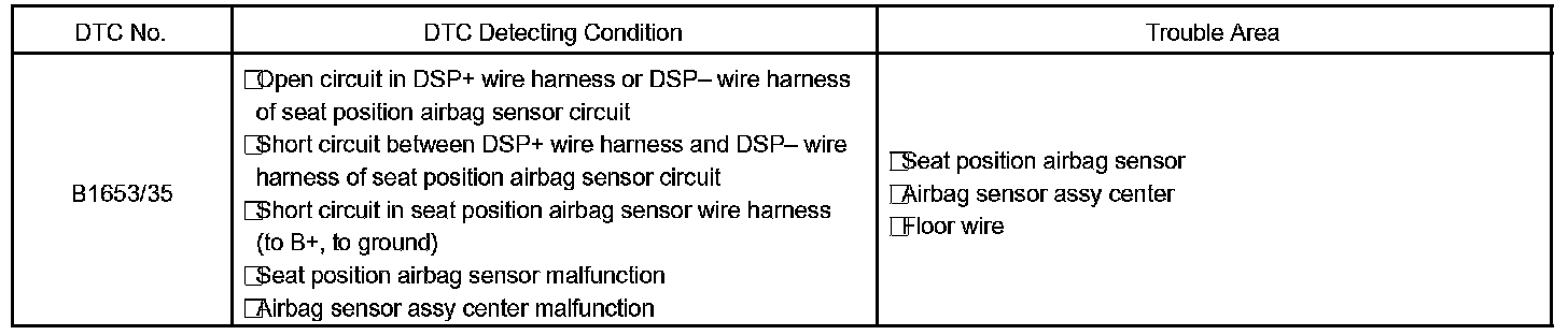 DTC B1653/35 is recorded when a malfunction is detected in the seat position airbag sensor circuit.