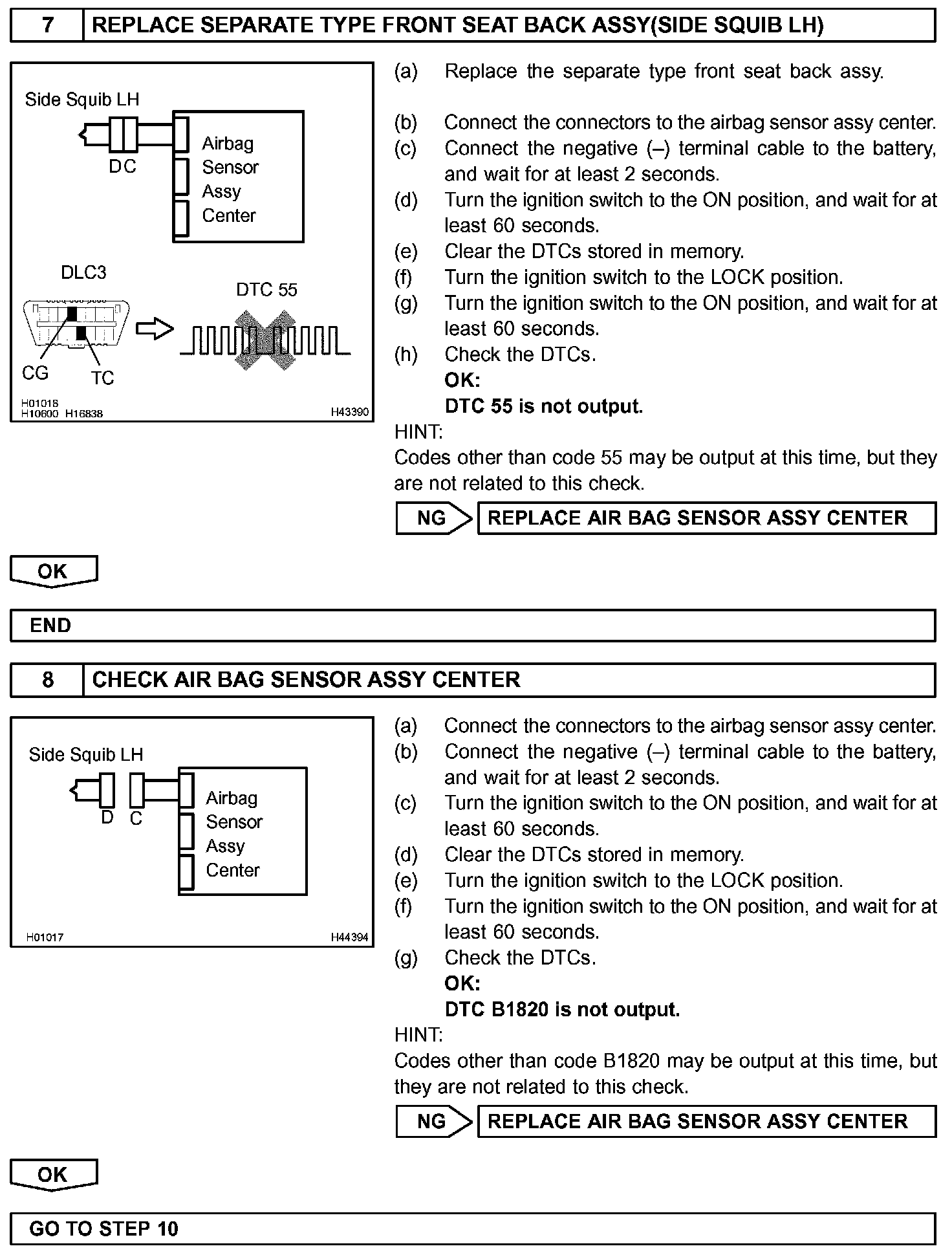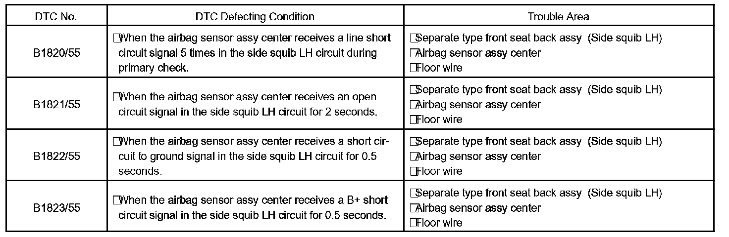 These DTCs are recorded when a malfunction is detected in the side squib LH circuit.