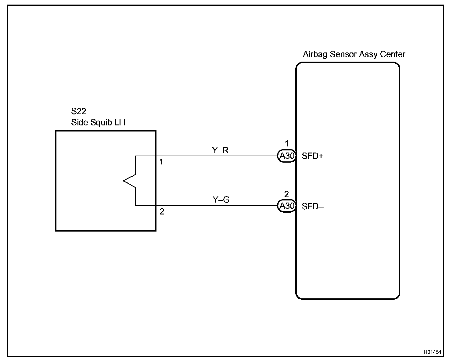The side squib LH circuit consists of the airbag sensor assy center and the separate type front seat back assy (side squib LH).