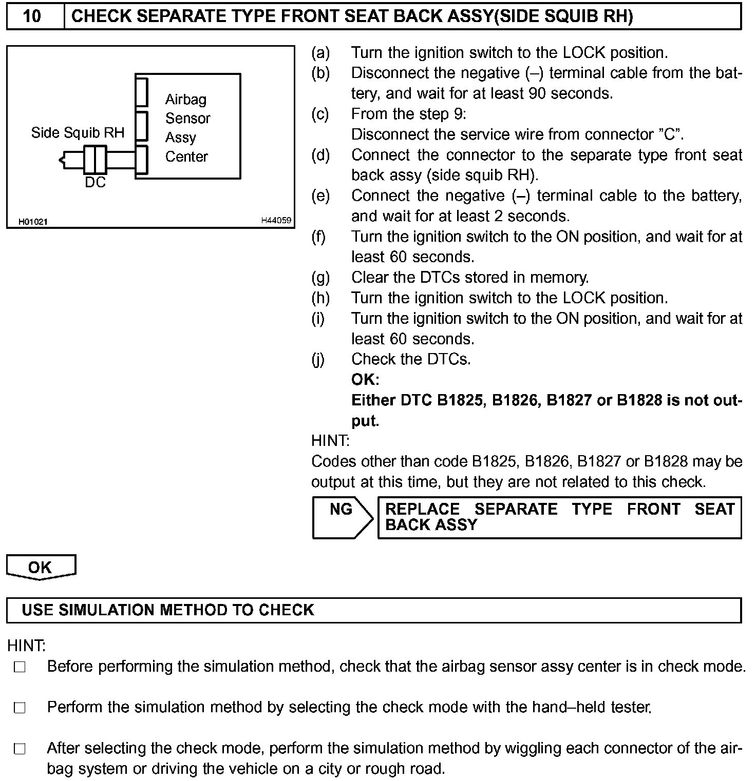 The side squib RH circuit consists of the airbag sensor assy center and the separate type front seat back assy (side squib RH).