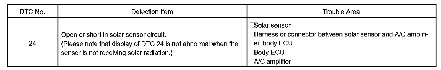 DTC 24 SOLAR SENSOR CIRCUIT (DRIVER SIDE)