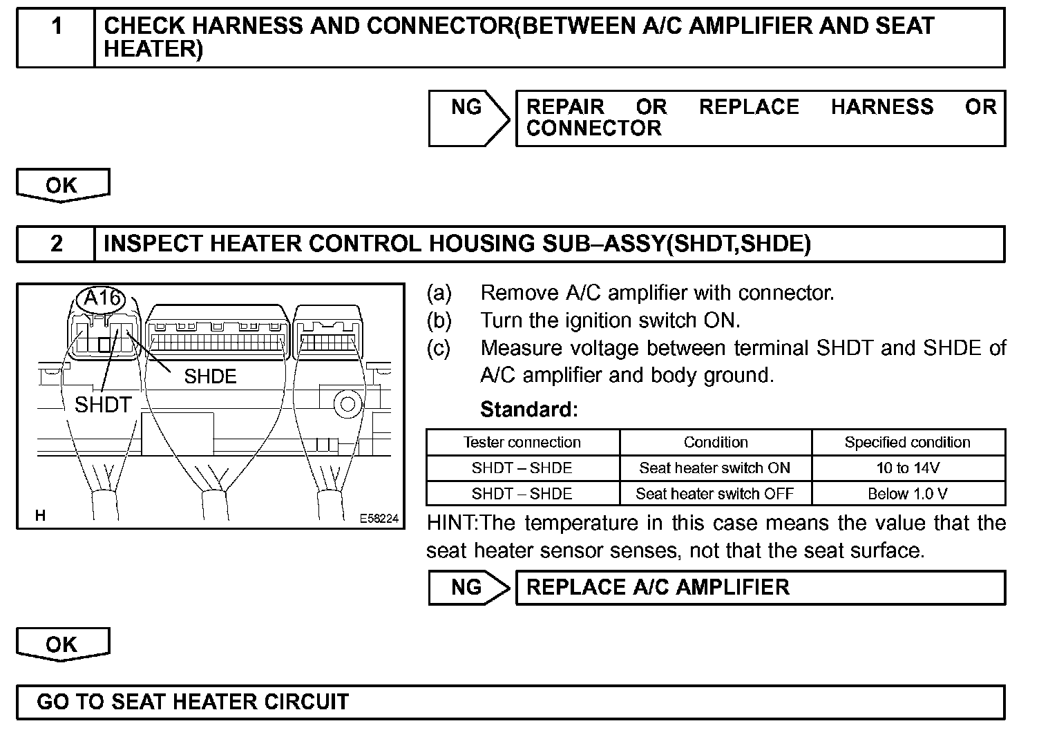 DTC 63 SEAT HEATER TEMPERATURE SENSOR CIRCUIT (DRIVER SIDE)