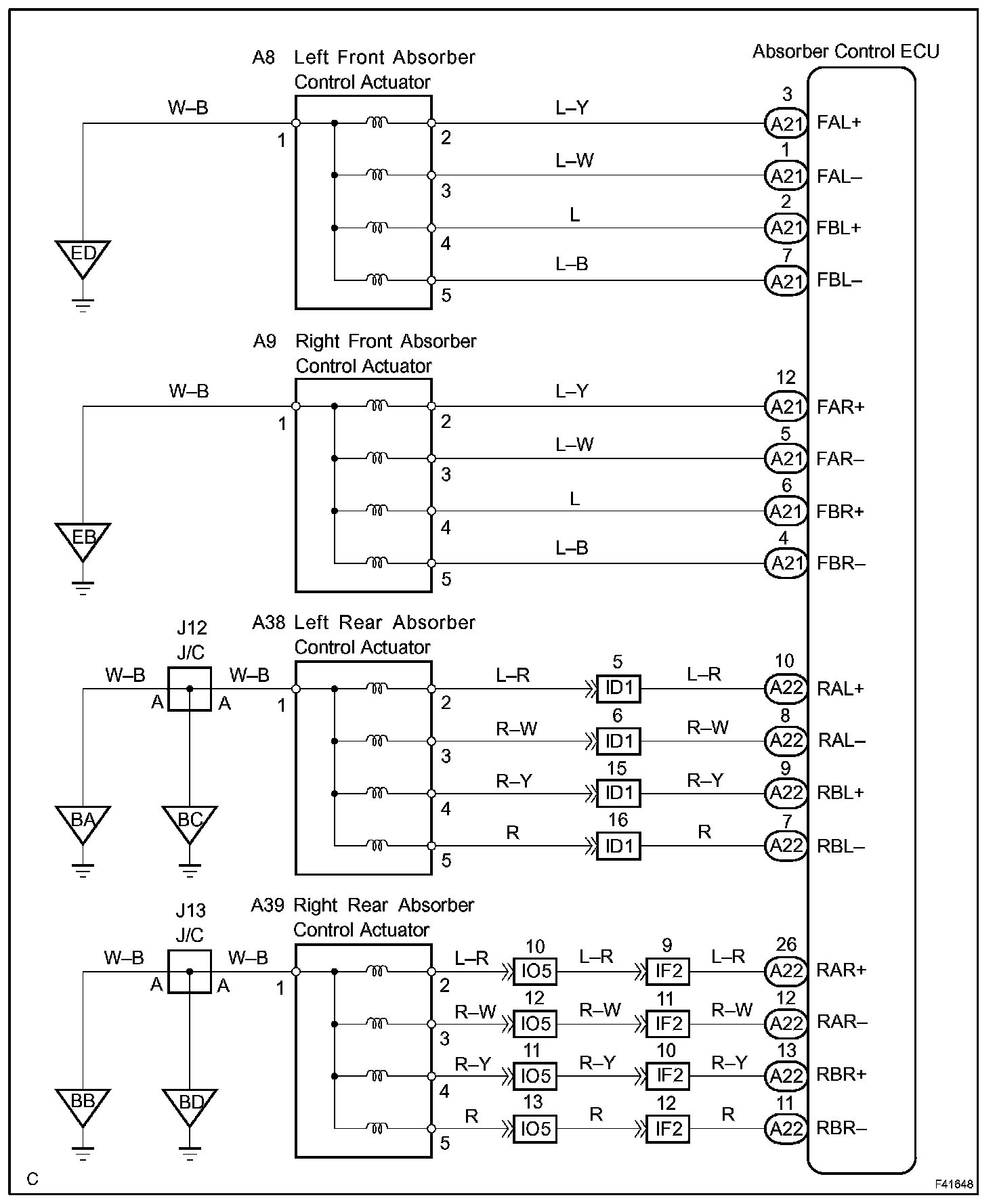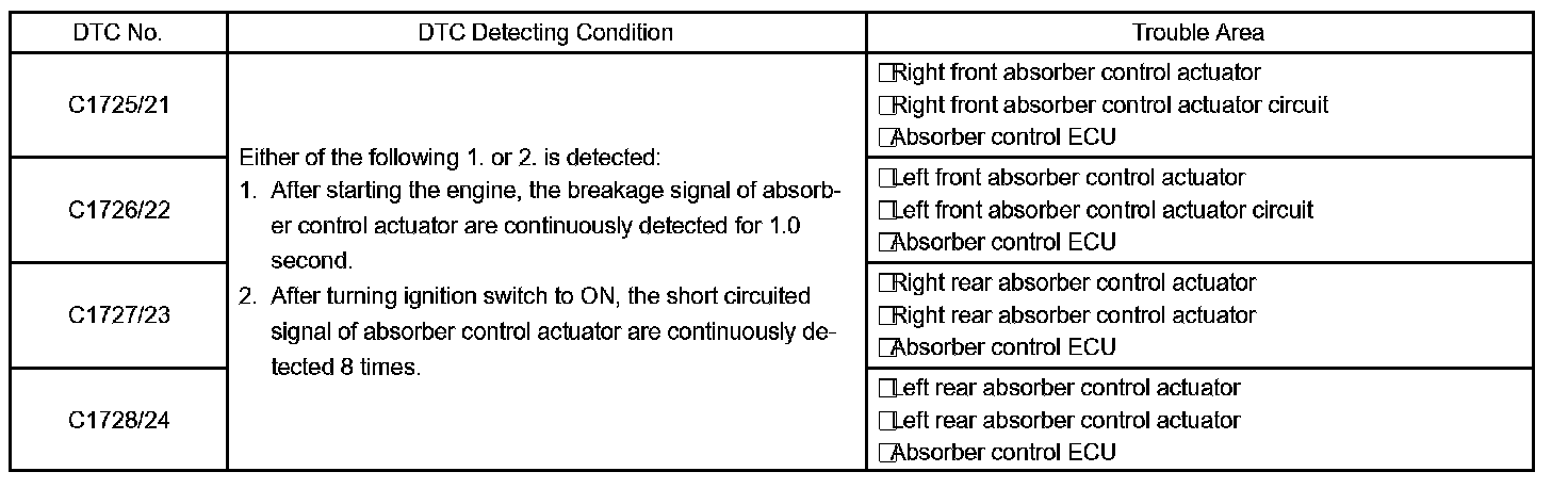 DTC 24 LEFT REAR ABSORBER CONTROL ACTUATOR CIRCUITCIRCUIT DESCRIPTION