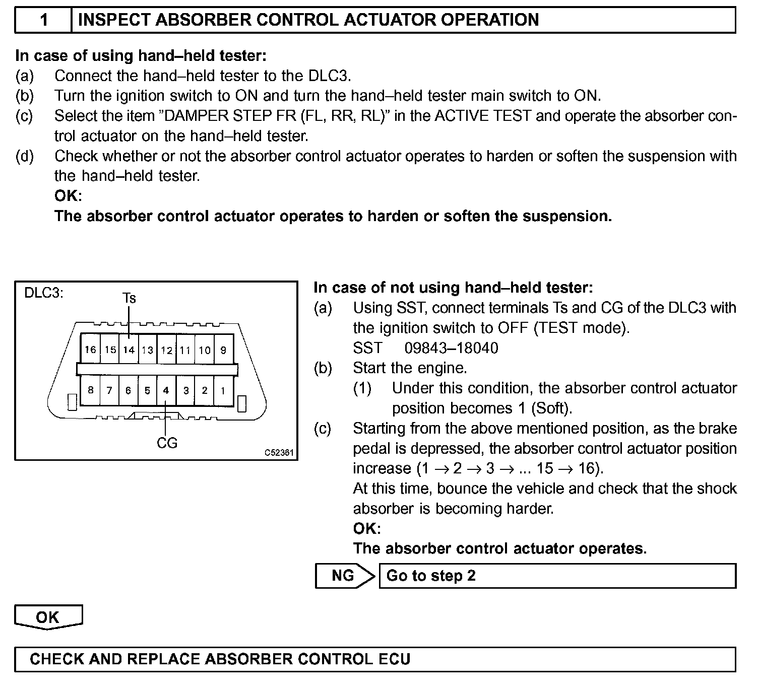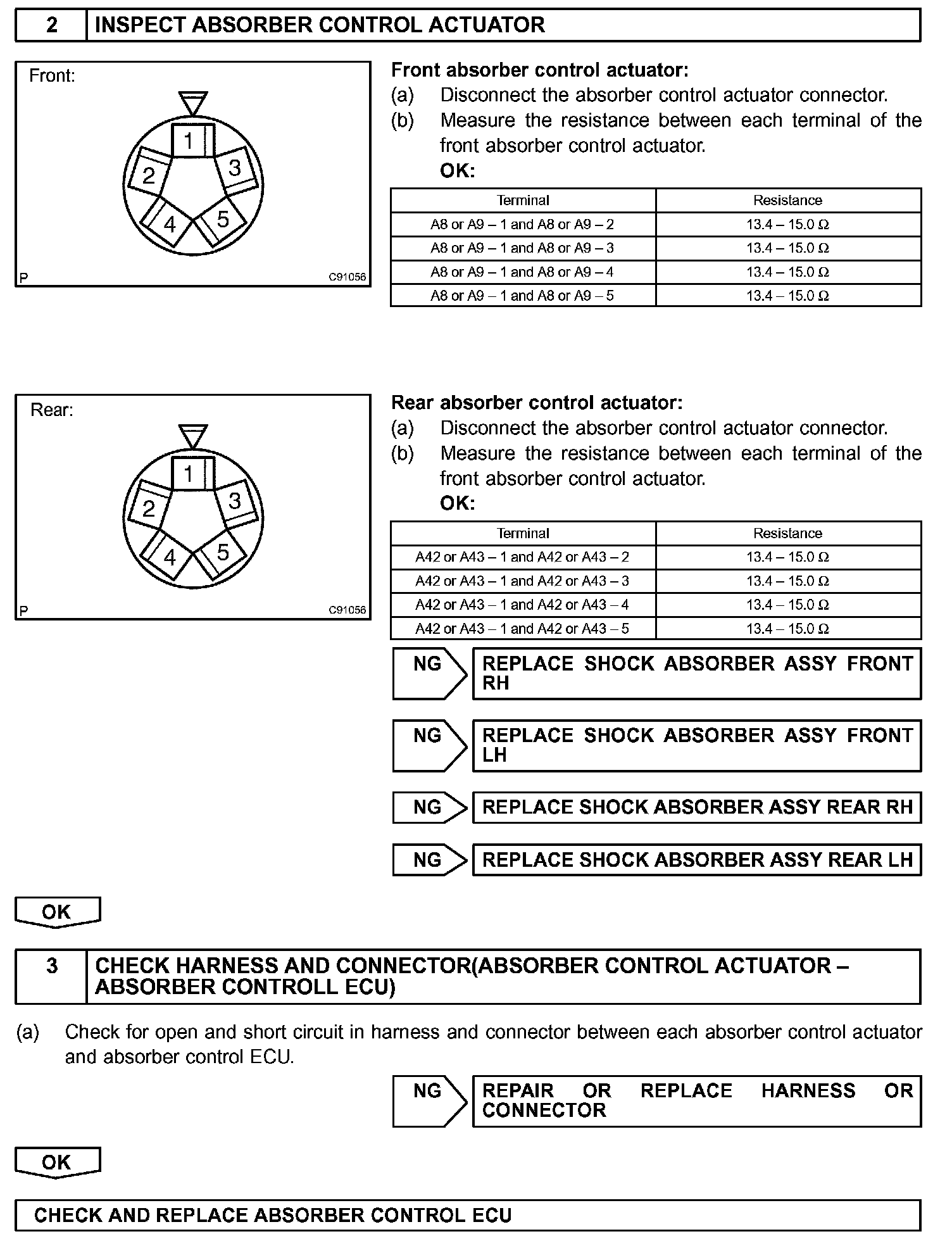 Absorber control actuator switches the damping force depending on the absorber control ECU signals.