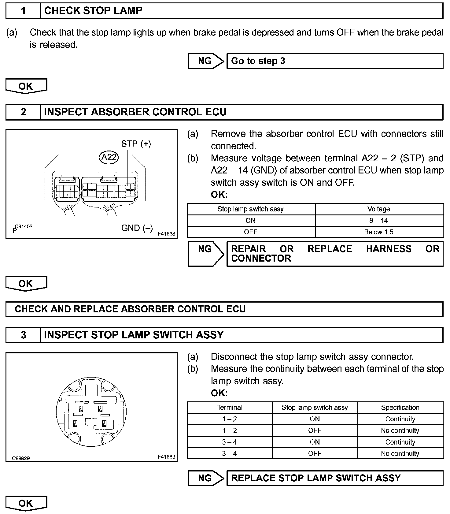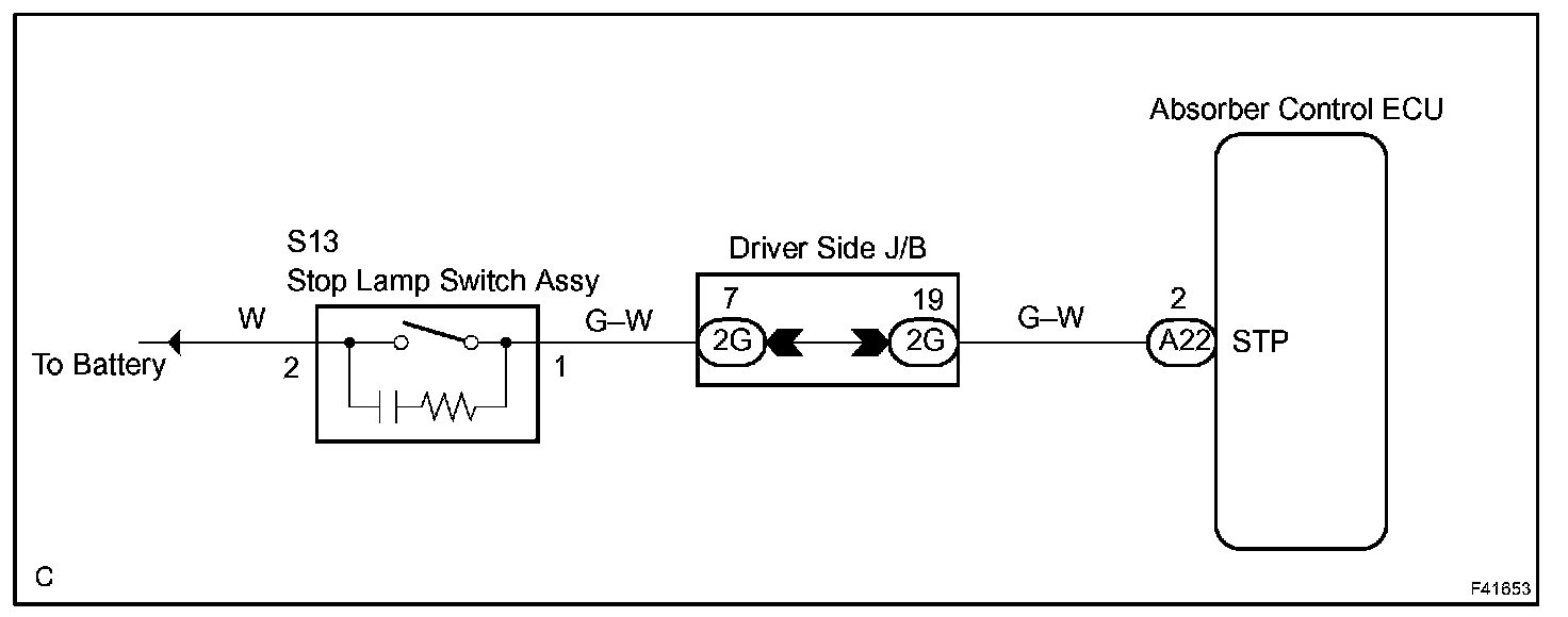 When the brake pedal is depressed, the stop lamp goes on and the signal is input to the STP terminal of absorber control ECU.