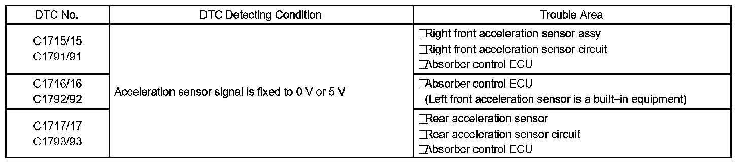 - DTC No. C1715/15 and C1791/91 is the right front acceleration sensor assy.