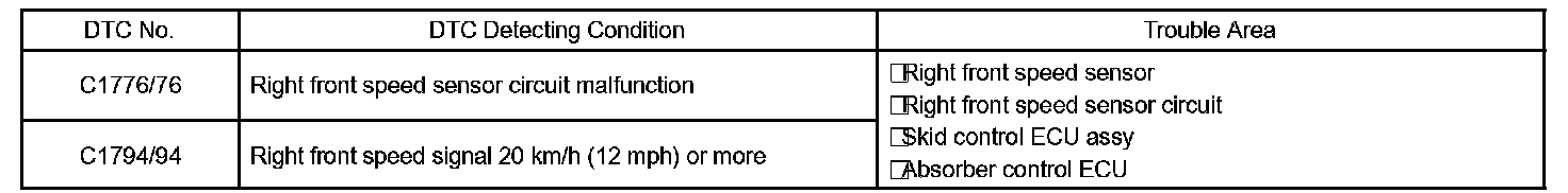 DTC 94 RIGHT FRONT SPEED SENSOR CIRCUITCIRCUIT DESCRIPTION