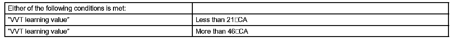 a. "VVT learning" value is less than 21 °CA (Camshaft Angle) or more than 40 °CA.