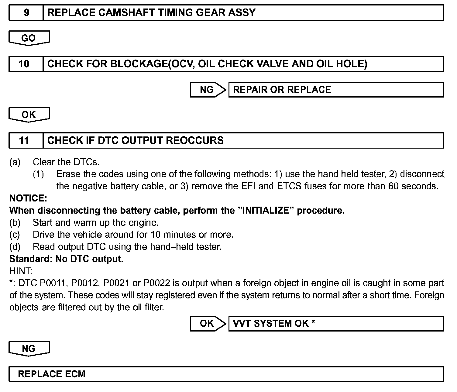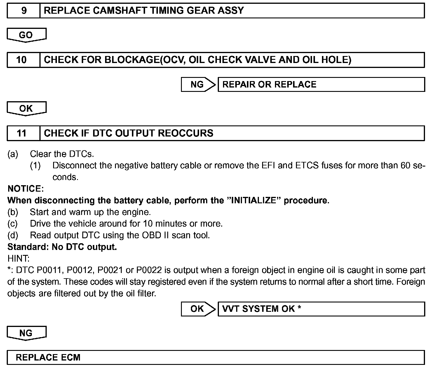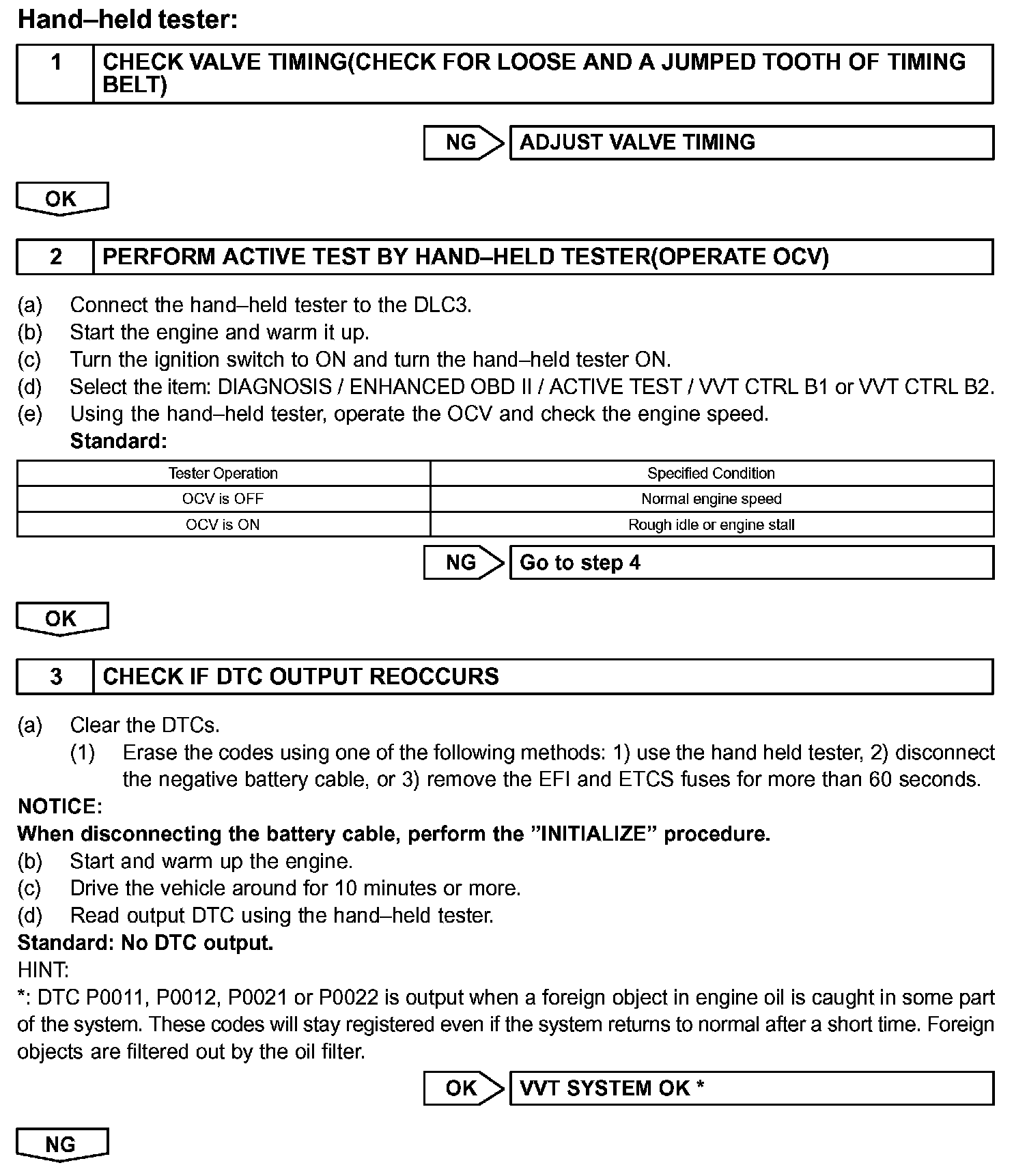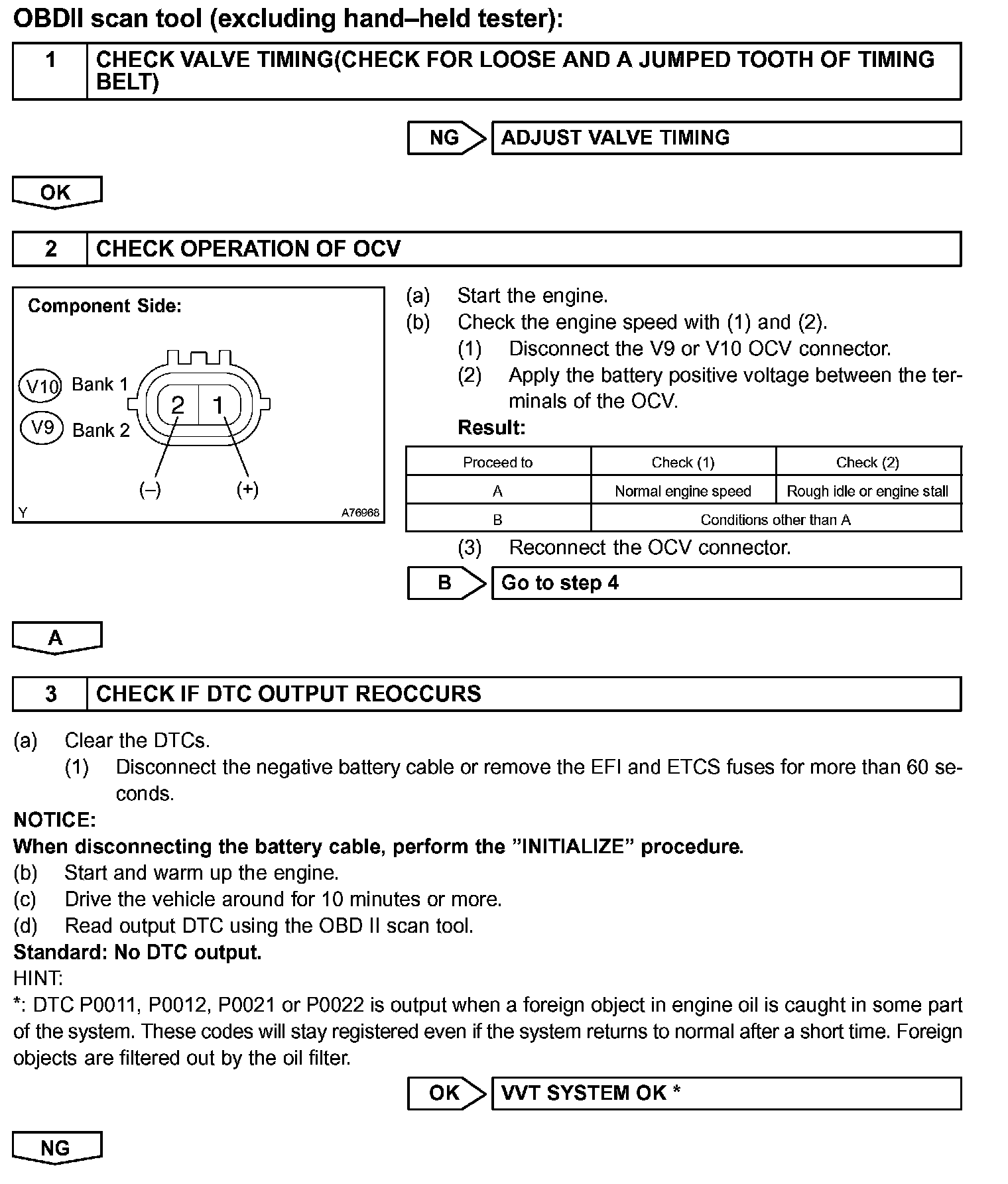 - If DTC P0011 or P0012 is displayed, check the right bank VVT system.