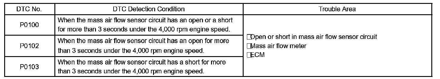 If there is a defect in the sensor or an open or short circuit, the voltage level will deviate from the normal operating range. The ECM interprets this deviation as a defect in the MAF meter and sets a DTC.