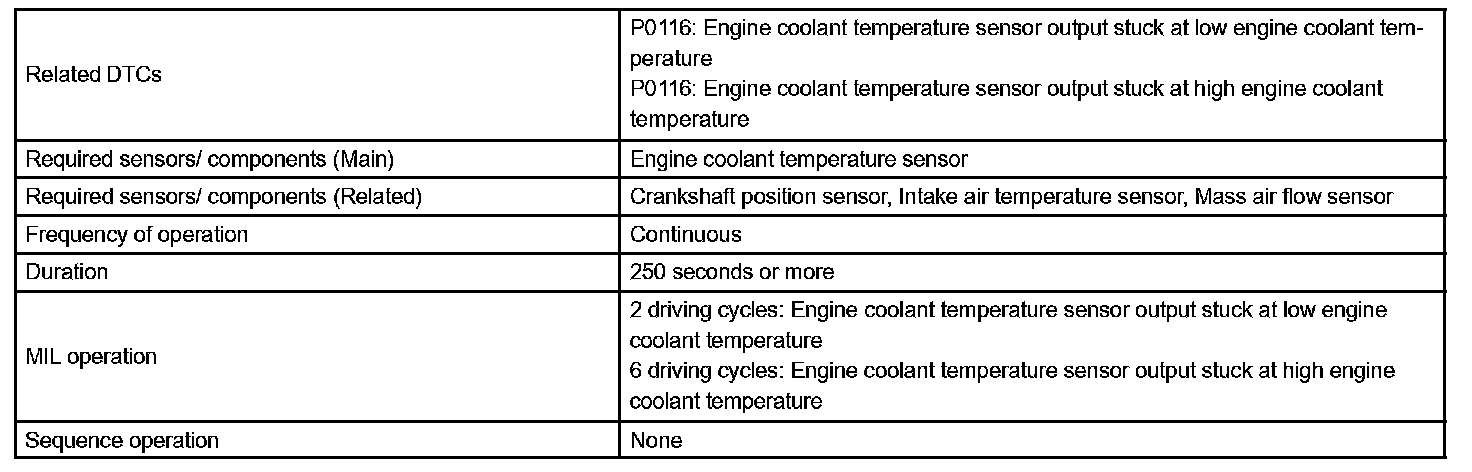 DTC P0116 ENGINE COOLANT TEMPERATURE CIRCUIT RANGE/PERFORMANCE PROBLEMCIRCUIT DESCRIPTION