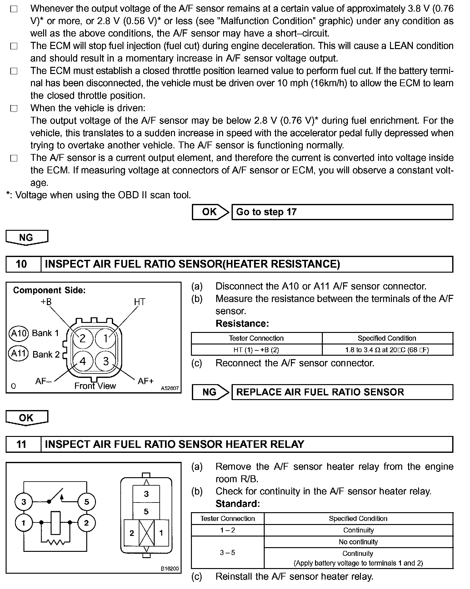 - A low A/F sensor voltage could be caused by a LEAN air-fuel mixture. Check the conditions that would cause the engine to run with a LEAN air-fuel mixture.