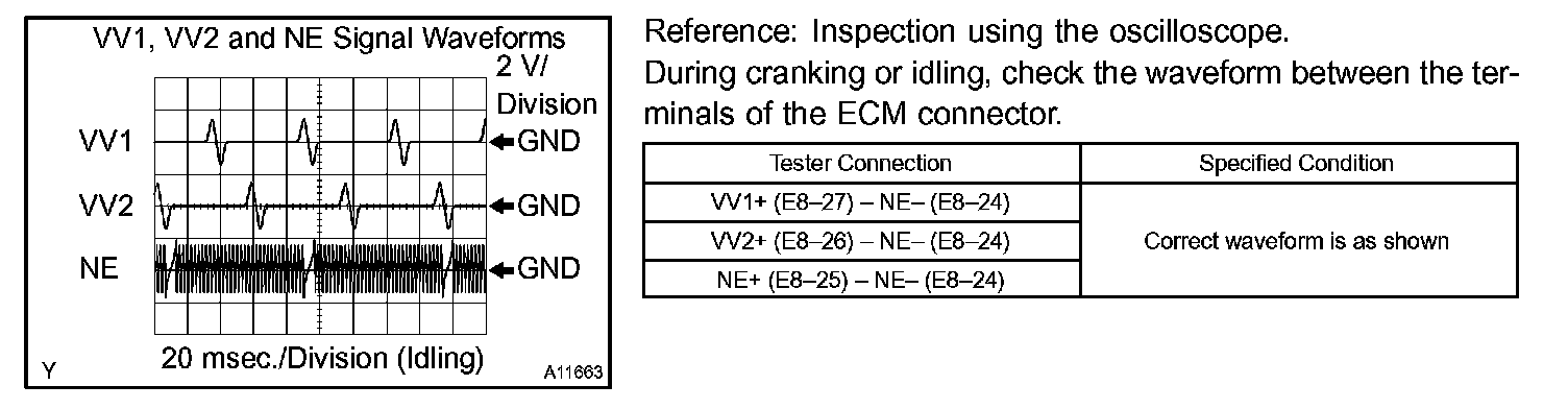 The variable valve timing (VVT) sensor (VV signal) consists of a magnet, iron core and pickup coil.