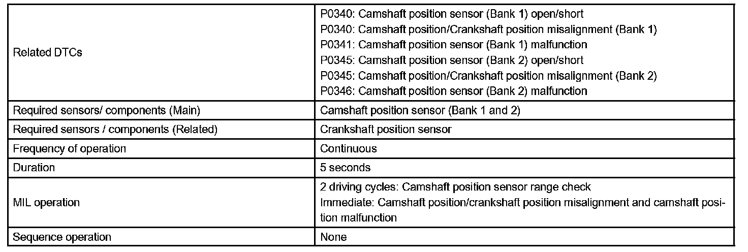 DTC P0340 CAMSHAFT POSITION SENSOR "A" CIRCUIT (BANK 1 OR SINGLE SENSOR)CIRCUIT DESCRIPTION