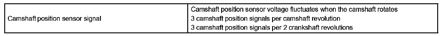This sensor monitors a timing rotor located on the camshaft and is used to detect a camshaft angle by the ECM. The camshaft rotation synchronizes with the crankshaft rotation, and this sensor communicates the rotation of the camshaft timing rotor as a pulse signal to the ECM. Based on the signal, the ECM controls fuel injection time and ignition timing.