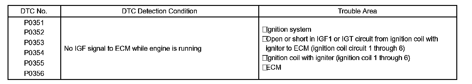 - If DTC P0356 is displayed, check No.6 ignition coil with igniter circuit.