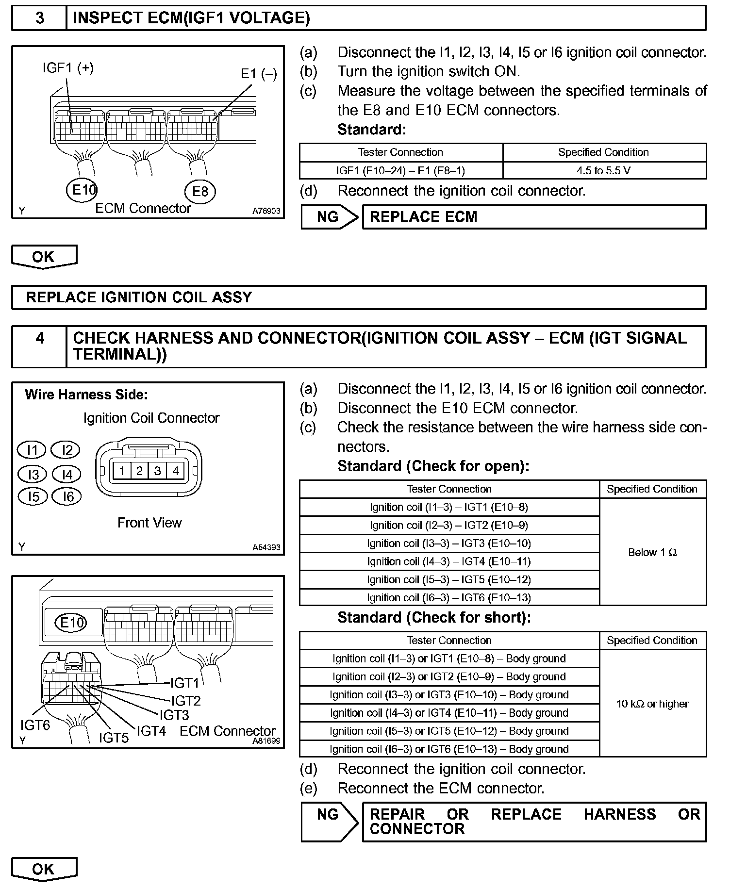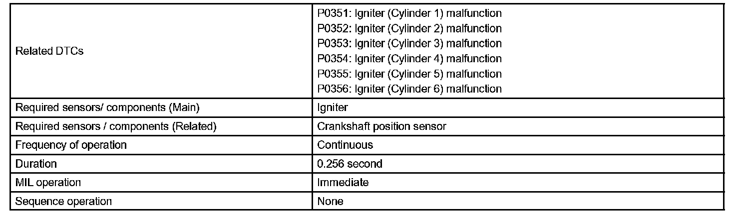 As the ECM cuts the current to the primary coil, the igniter sends back the ignition confirmation (IGF) signal for each cylinder ignition to the ECM.