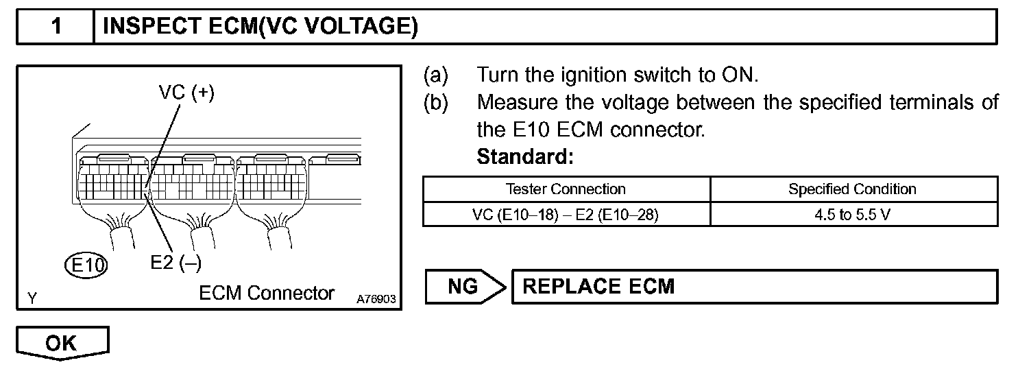 - If DTCs related to different systems that have terminal E2 as the ground terminal are output simultaneously, terminal E2 may have an open circuit.