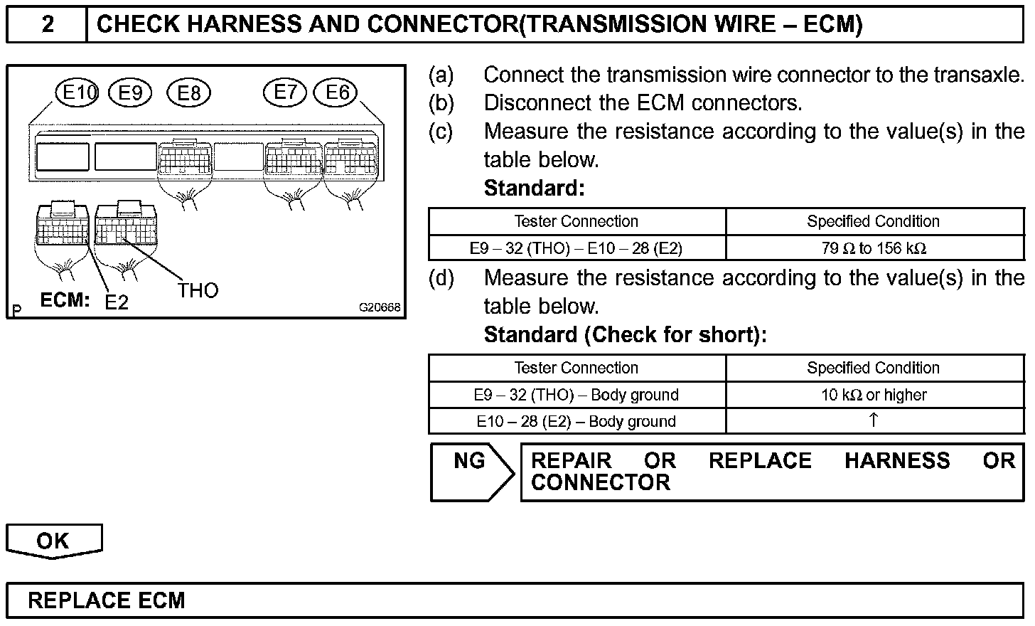Measure the resistance between THO1 (THO) and body ground.