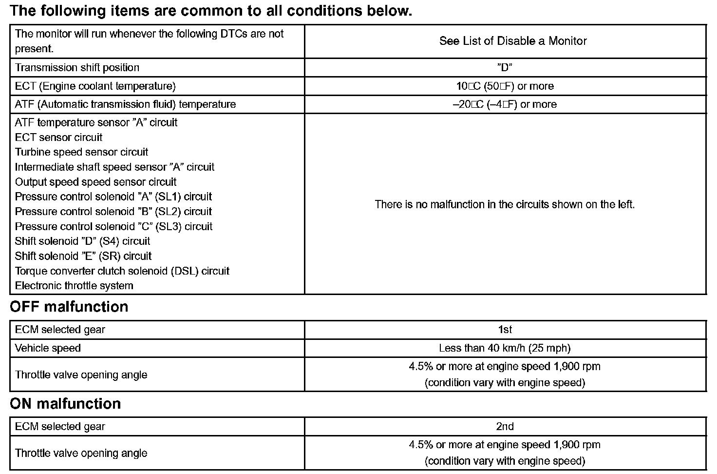 Then the ECM compares the actual gear with the shift schedule in the ECM memory to detect mechanical problems of the shift solenoid valves and valve body.