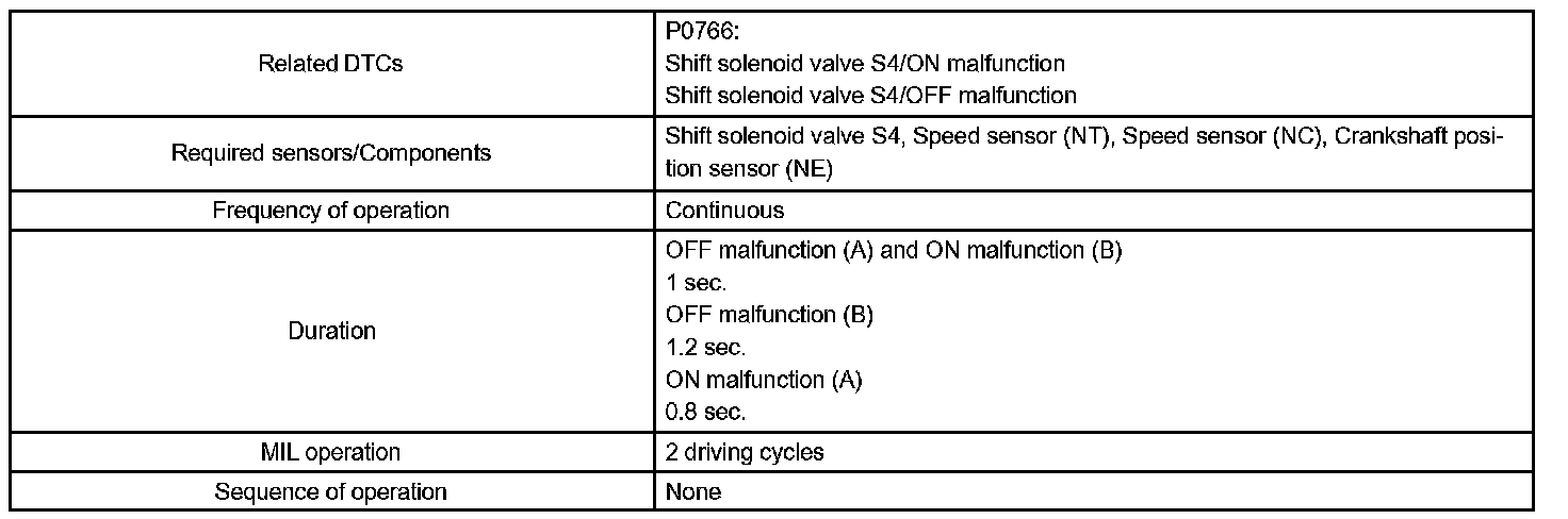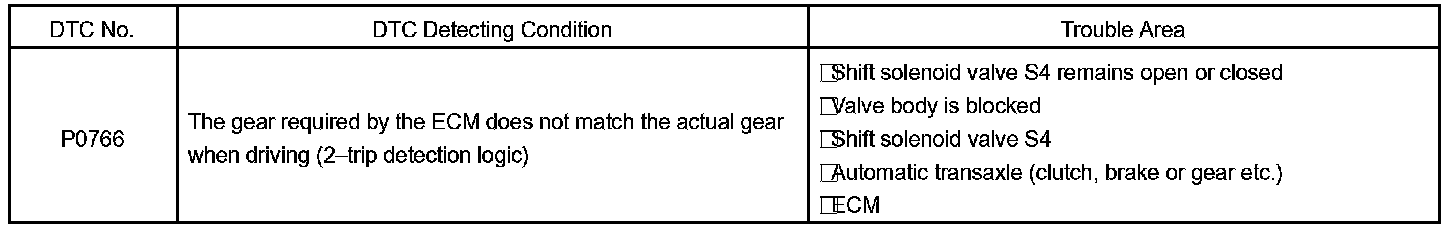 DTC P0766 SHIFT SOLENOID "D" PERFORMANCE (SHIFT SOLENOID VALVE S4)SYSTEM DESCRIPTION