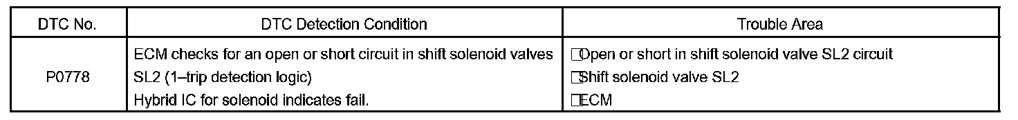 DTC P0778 PRESSURE CONTROL SOLENOID "B" ELECTRICAL (SHIFT SOLENOID VALVE SL2)CIRCUIT DESCRIPTION